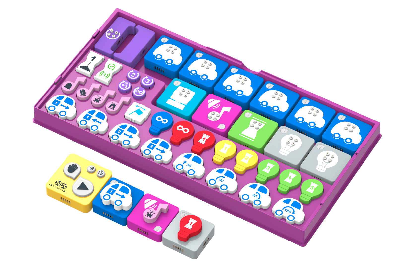 With the AlgoBuddy program, every child acts as a little coding engineer, as they help AlgoBuddy move around, light up, respond to the environment, and engage with a variety of unique content that provides an exciting framework for AlgoBuddy to accomplish various tasks.